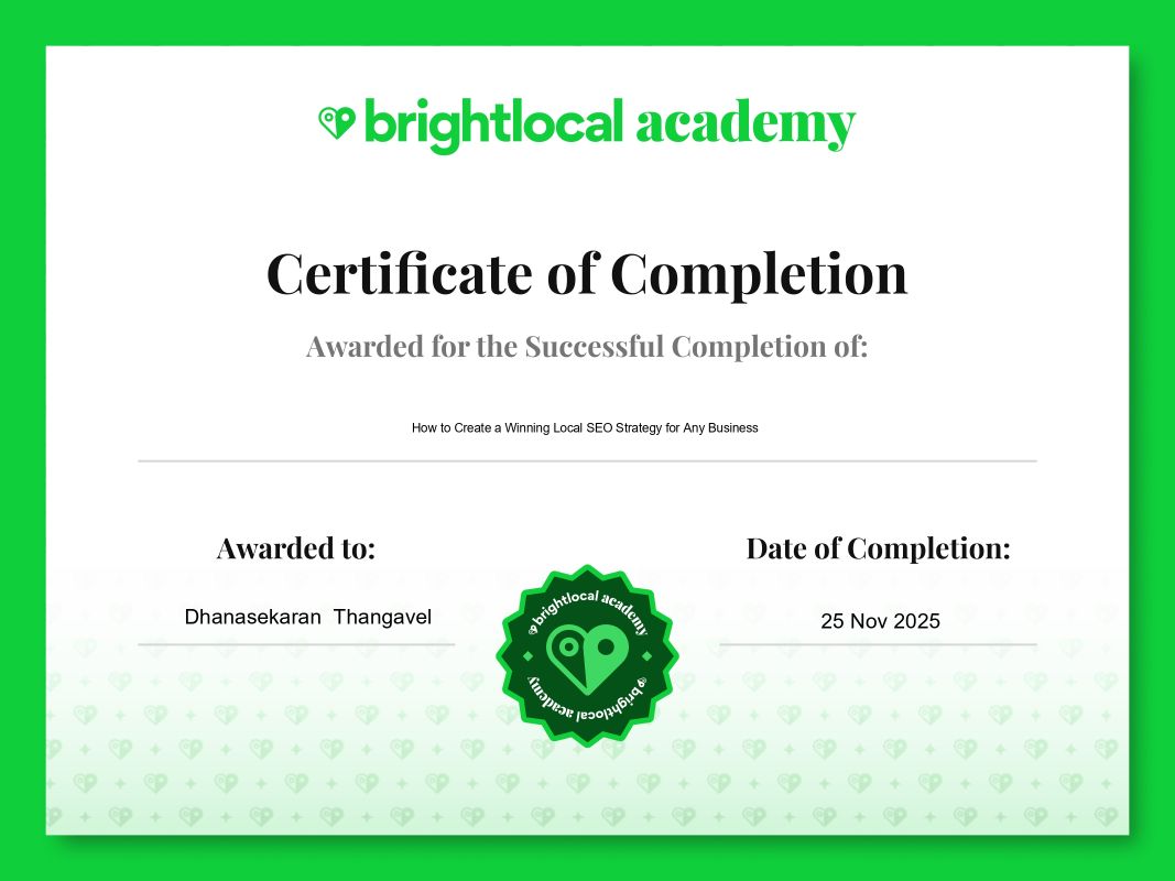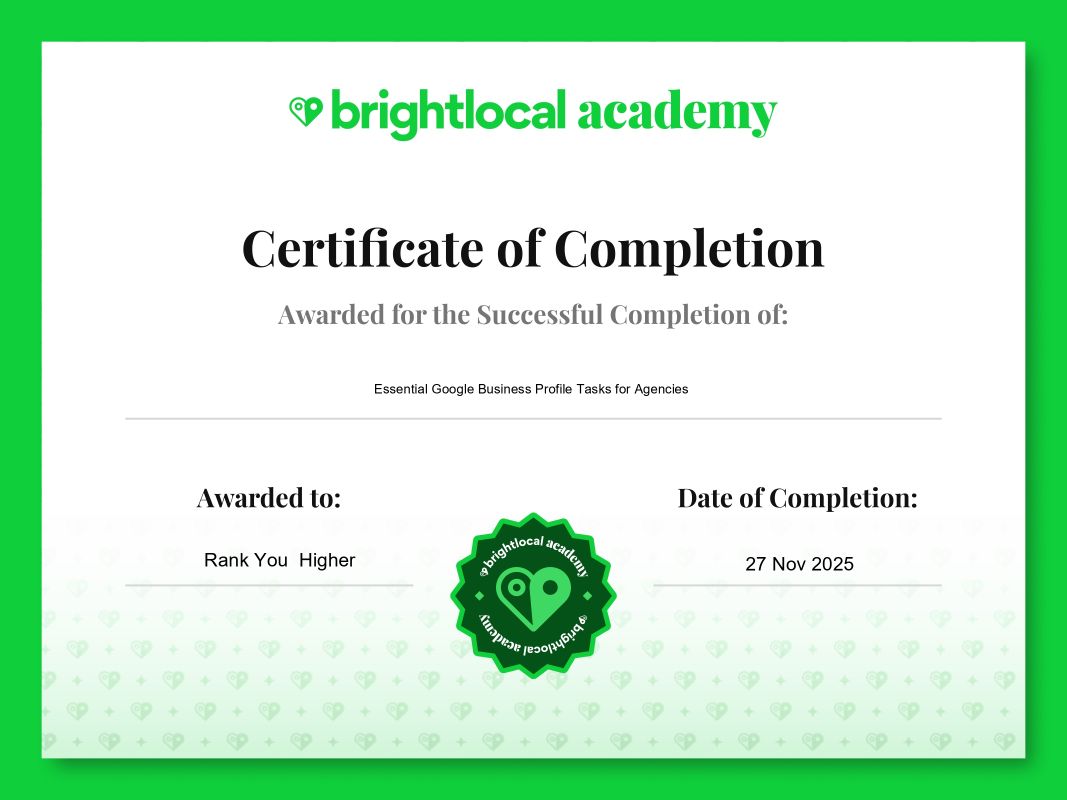 These arenāt just ānice to haveā badges. They show our team follows proven Google Business Profile and Local SEO methods to help businesses rank higher, get more calls, and earn stronger local trust.